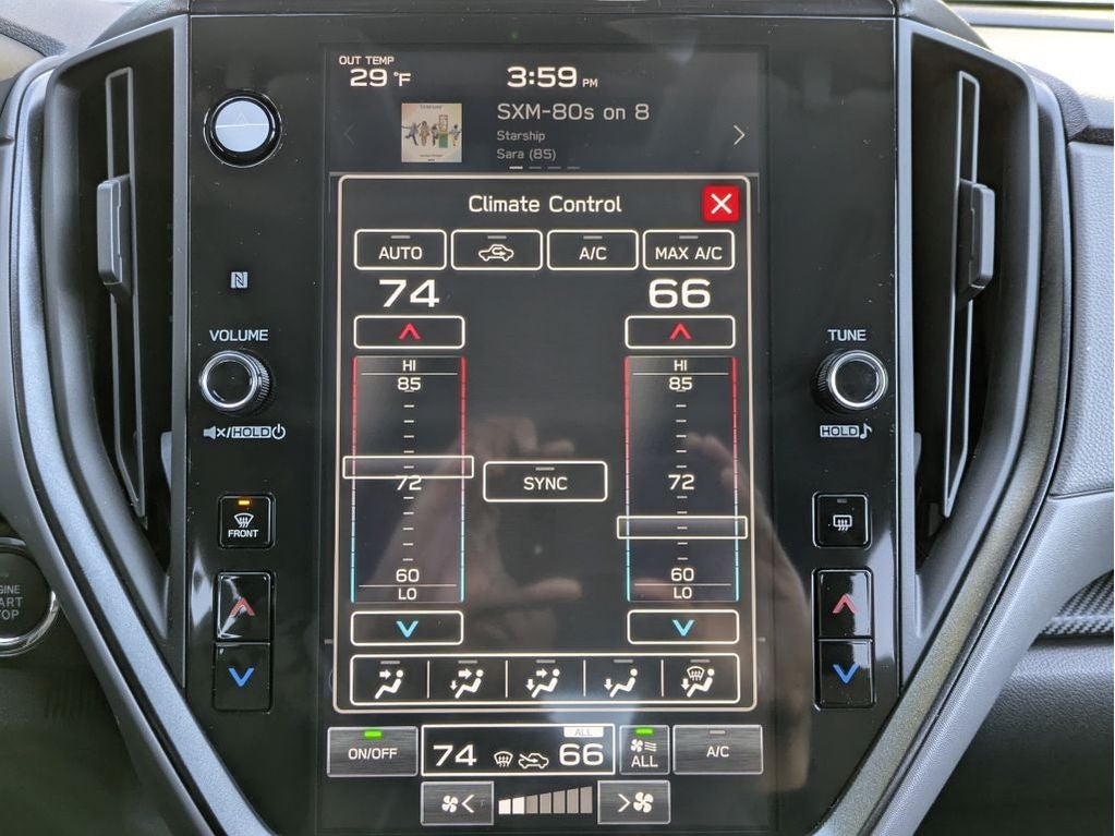 - Radio: Subaru 11.6" Multimedia Plus System -inc: AM/FM stereo, HD Radio, multi-touch gesture high resolution display screen, voice activated controls, Bluetooth® audio streaming and hands-free phone connectivity, Bluetooth® hands-free SMS text messaging connectivity, iPod control capability, smartphone integration: wired and wireless Android Auto w/full screen view and wireless Apple CarPlay w/full screen view, USB and Over The Air (OTA) audio system update, steering wheel audio system and Bluetooth® control switches, 6 speakers (2 dash panel tweeter, 2 front door and 2 rear door), illuminated 3.5mm auxiliary input jack, illuminated front USB A and C input/charge ports, connected services operation indicator, SOS emergency assistance: red SOS button and enhanced roadside assistance: blue i-button