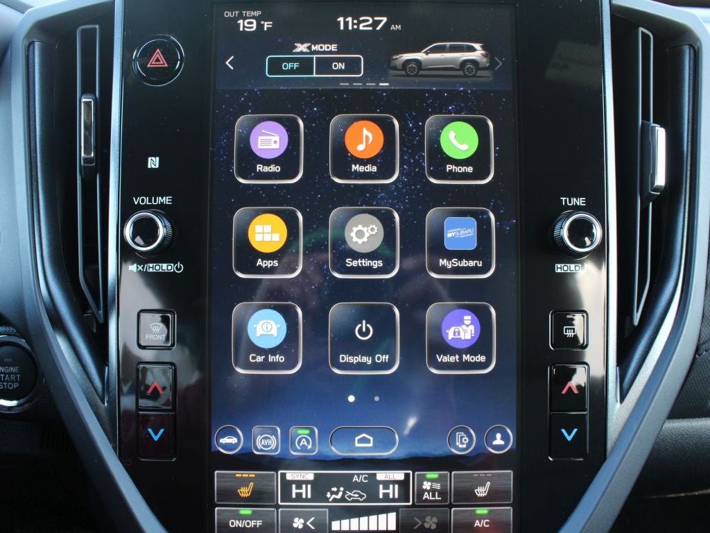 - Radio: Subaru 11.6" Multimedia Plus System -inc: valet mode, integrated center information display, AM/FM stereo HD Radio, multi-touch gesture high resolution display screen, voice activated controls, Bluetooth® audio streaming and hands-free phone connectivity w/SMS text messaging (refer to Subaru.com for cellphone compatibility), iPod control capability, smartphone integration: Android Auto and Apple CarPlay w/full screen view and wireless connection, SiriusXM satellite radio w/360L (free 4-month trial subscription included), USB and Over The Air (OTA) audio system update, steering wheel controls, 6 speakers, 3.5mm auxiliary input jack and roof mounted audio and satellite antenna