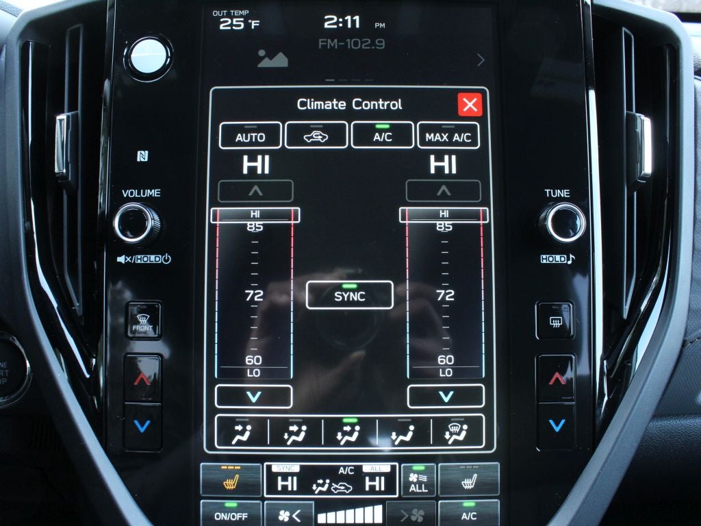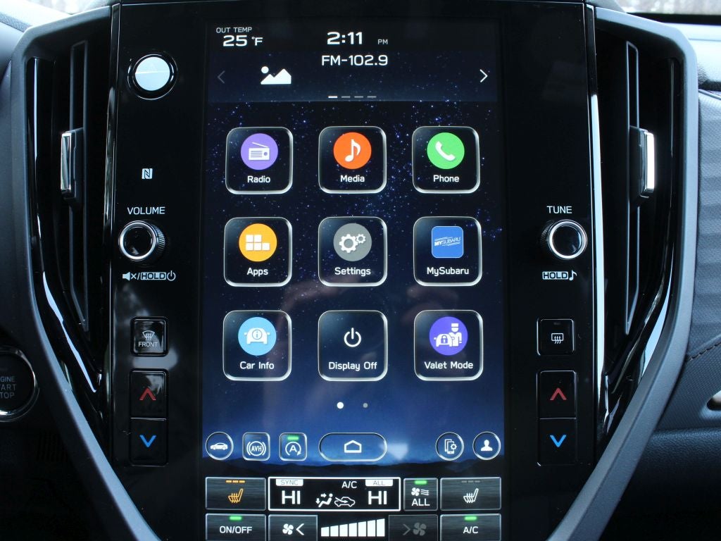 - Radio: Subaru 11.6" Multimedia Plus System -inc: valet mode, integrated center information display, AM/FM stereo HD Radio, multi-touch gesture high resolution display screen, voice activated controls, Bluetooth® audio streaming and hands-free phone connectivity w/SMS text messaging (refer to Subaru.com for cellphone compatibility), iPod control capability, smartphone integration: Android Auto and Apple CarPlay w/full screen view and wireless connection, SiriusXM satellite radio w/360L (free 4-month trial subscription included), USB and Over The Air (OTA) audio system update, steering wheel controls, 6 speakers, 3.5mm auxiliary input jack and roof mounted audio and satellite antenna
