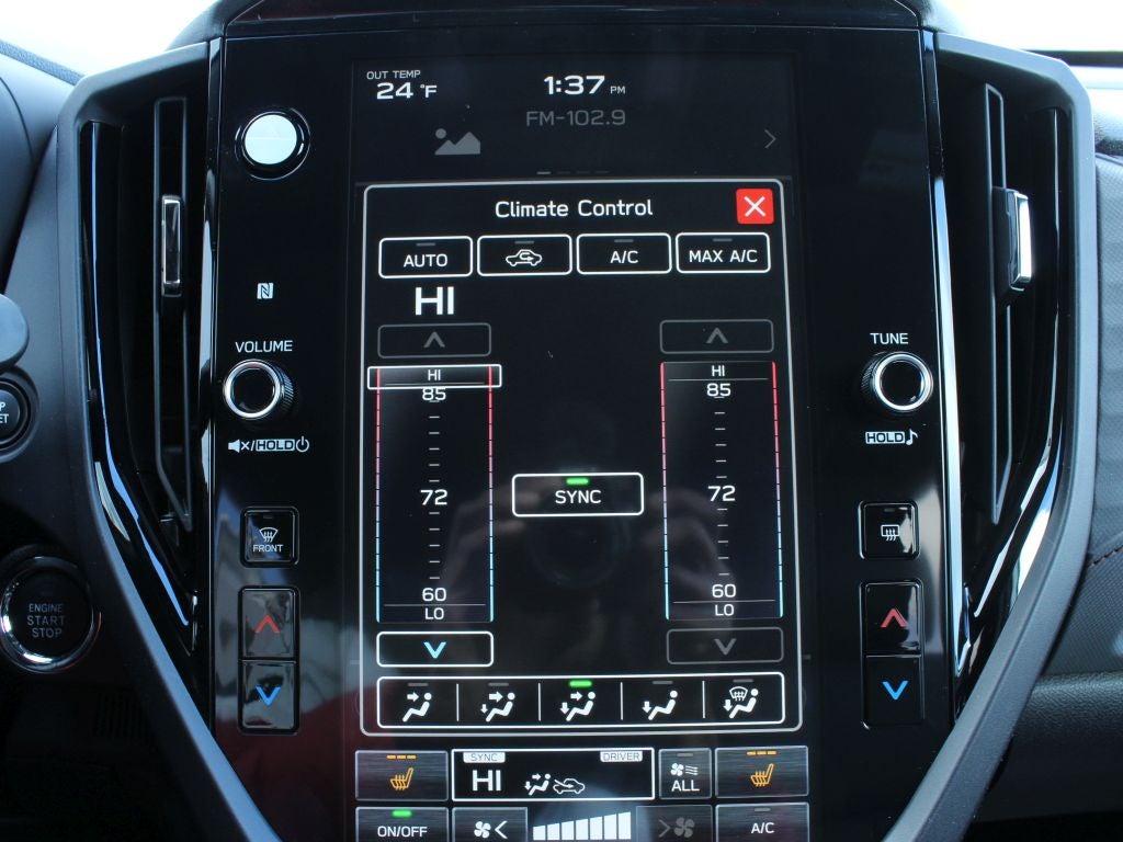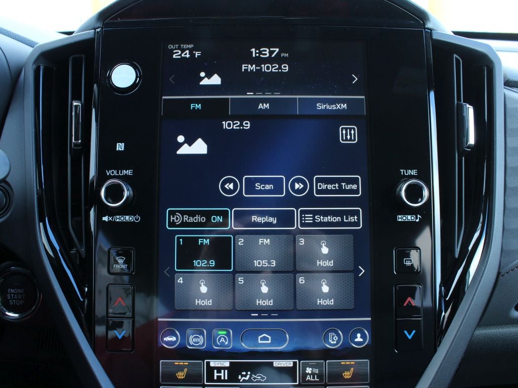- Radio: Subaru 11.6" Multimedia Plus System -inc: valet mode, integrated center information display, AM/FM stereo HD Radio, multi-touch gesture high resolution display screen, voice activated controls, Bluetooth® audio streaming and hands-free phone connectivity w/SMS text messaging (refer to Subaru.com for cellphone compatibility), iPod control capability, smartphone integration: Android Auto and Apple CarPlay w/full screen view and wireless connection, SiriusXM satellite radio w/360L (free 4-month trial subscription included), USB and Over The Air (OTA) audio system update, steering wheel controls, 6 speakers, 3.5mm auxiliary input jack and roof mounted audio and satellite antenna