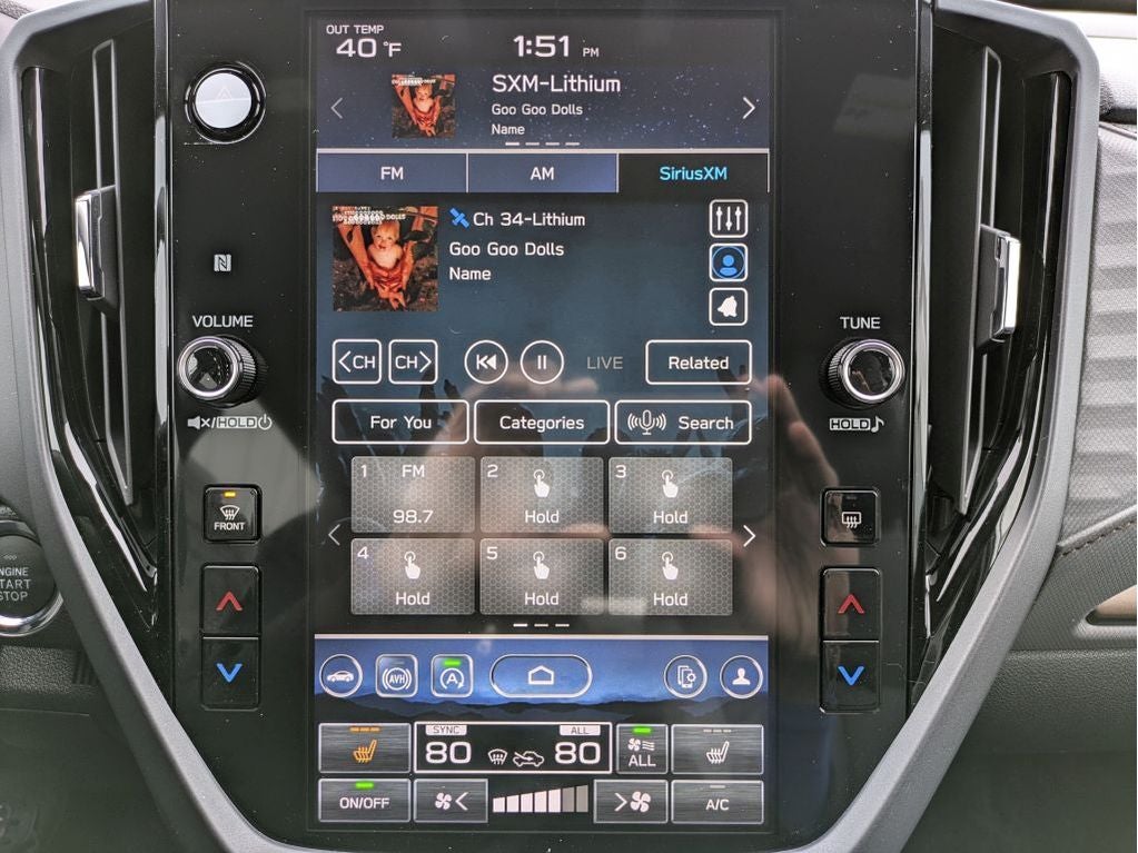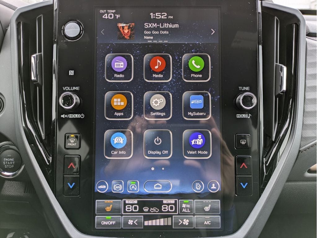 - Radio: Subaru 11.6" Multimedia Plus System -inc: valet mode, integrated center information display, AM/FM stereo HD Radio, multi-touch gesture high resolution display screen, voice activated controls, Bluetooth® audio streaming and hands-free phone connectivity w/SMS text messaging (refer to Subaru.com for cellphone compatibility), iPod control capability, smartphone integration: Android Auto and Apple CarPlay w/full screen view and wireless connection, SiriusXM satellite radio w/360L (free 4-month trial subscription included), USB and Over The Air (OTA) audio system update, steering wheel controls, 6 speakers, 3.5mm auxiliary input jack and roof mounted audio and satellite antenna