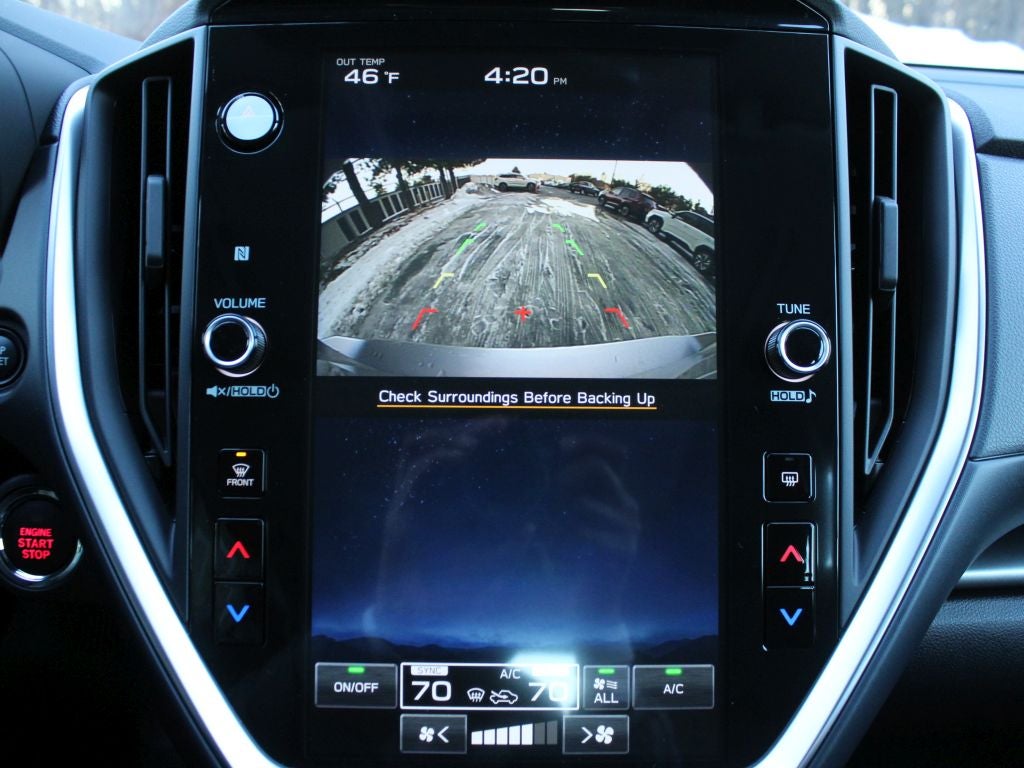 - Radio: Subaru 11.6" Multimedia Plus System -inc: valet mode, AM/FM stereo, HD Radio, multi-touch gesture high resolution display screen, voice activated controls, Bluetooth® audio streaming and hands-free phone connectivity, Bluetooth® hands-free SMS text messaging connectivity, iPod control capability, smartphone integration: wired and wireless Android Auto w/full screen view, wireless Apple CarPlay w/full screen view and wireless connection, USB and Over The Air (OTA) audio system update, audio system and Bluetooth® steering wheel control switches, 6 speakers (2 dash panel tweeter, 2 front door, 2 rear door), illuminated 3.5mm auxiliary input jack, illuminated USB A and C input charge ports, roof mounted satellite and connected services, roof mounted black antenna, connected services operation indicator, SOS emergency assistance (red button) and ehanced roadside assistance (blue i-button)