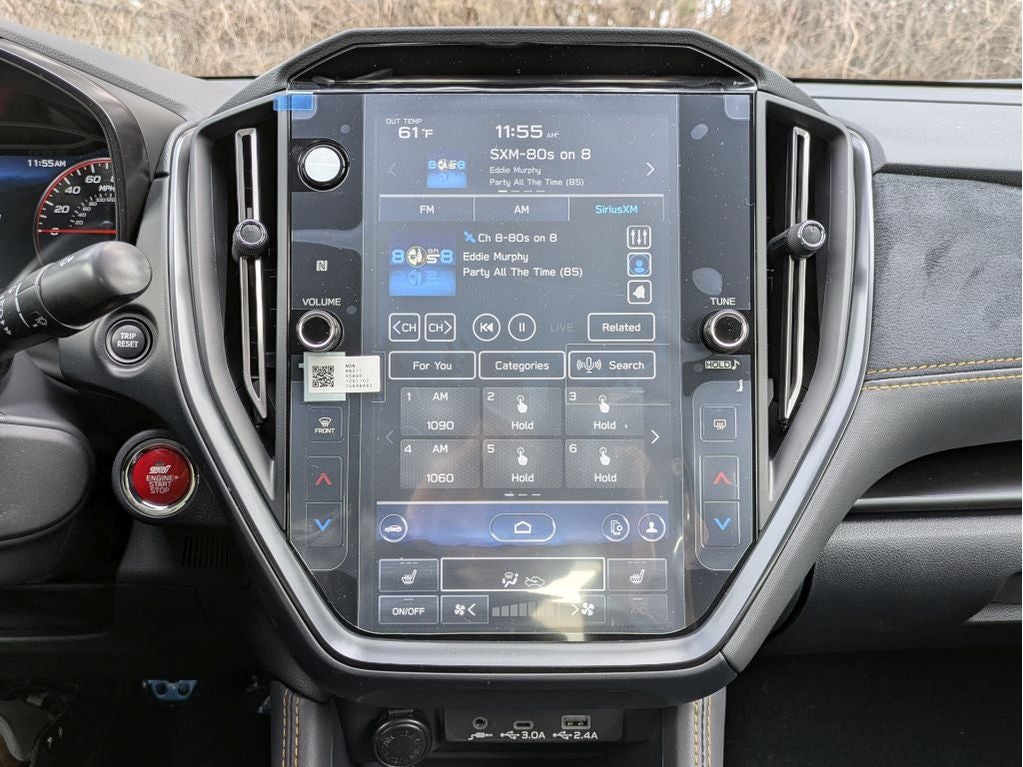 - Radio: Subaru 11.6" Multimedia System w/Navigation -inc: AM/FM stereo HD radio, valet mode, multi-touch gesture high resolution display screen, voice activated controls, voice activated navigation, Bluetooth® audio streaming and hands-free phone connectivity, Bluetooth® hands-free SMS text messaging connectivity, TomTom navigation software w/what3words, iPod control capability, rear-vision camera display, smartphone integration: Android Auto w/full screen view and wireless connection, Apple CarPlay w/full screen view and wireless connection, USB and Over The Air (OTA) audio system update, 504 watt harman/kardon speaker system w/11 speakers, roof mounted audio, satellite and connected services antenna, SiriusXM w/360L (4 months free trial included/subscription required after), SiriusXM Travel Link (3 years free trial/subscription required after) and SiriusXM Traffic (3 years free trial/subscription required after)