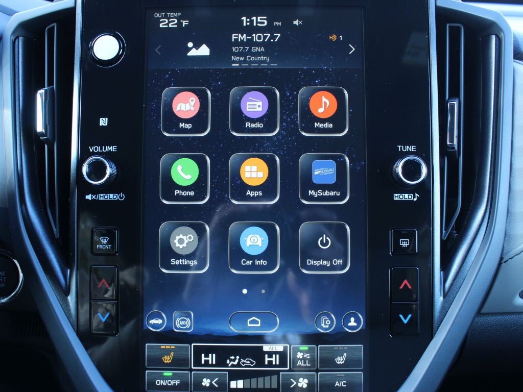 - Radio: Subaru 11.6" Multimedia Navigation System -inc: valet mode, integrated center information display, AM/FM stereo HD Radio, multi-touch gesture high resolution display screen, voice activated controls, voice activated navigation, Bluetooth® audio streaming and hands-free phone connectivity w/SMS text messaging connectivity (refer to subaru.com for cell phone compatibility), TomTom navigation software w/What3Words, iPod control capability, SiriusXM w/360L (4 months free trial/subscription required after), SiriusXM Travel Link (3 years free trial/subscription required after), SiriusXM Live Traffic (1 year free trial/subscription required after), smartphone integration for Android Auto and Apple CarPlay w/full screen view and wireless connection, USB and Over The Air (OTA) audio system update, TomTom navigation system update w/USB/Map Over The Air (MOTA) (3 years free map updates), steering wheel control switches for audio and Bluetooth®, 6 speakers, 3.5mm auxiliary input jack and roof mounted audio and satellite antenna