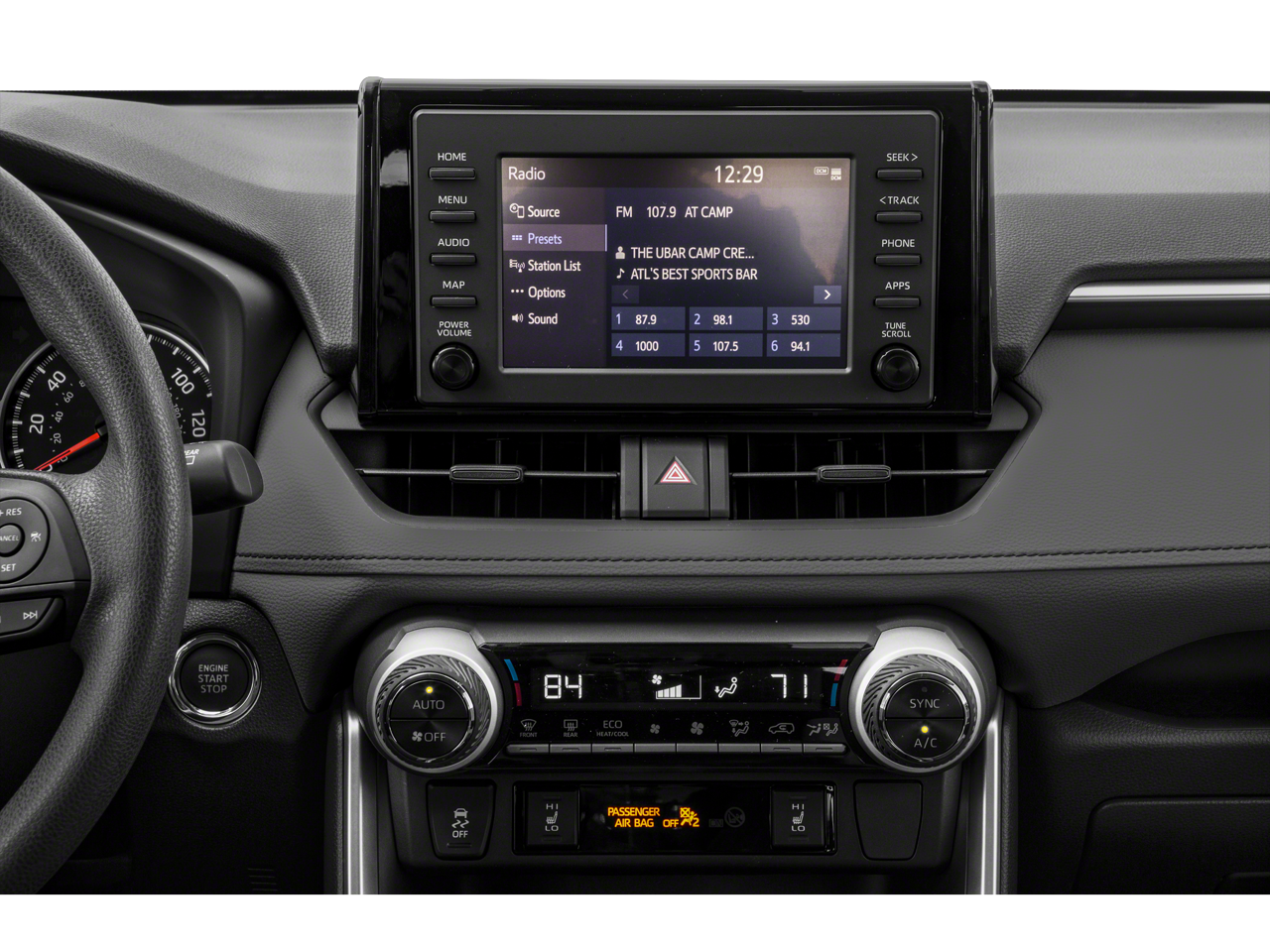 - Radio: AM/FM Stereo -inc: 6 speakers, 7.0" touchscreen, Scout GPS link compatible w/up to 3-year trial, Siri Eyes Free, Apple CarPlay compatible, Amazon Alexa compatible, Android Auto, aux port, USB media port, 4 USB charging ports, hands-free phone capability, advanced voice recognition and music streaming via Bluetooth wireless technology, Toyota connected services - Safety Connect w/3-year trial, SiriusXM w/3-month all access trial, Wi-Fi Connect powered by Verizon w/up to 2GB within 6-month trial, See toyota.com/entune for details